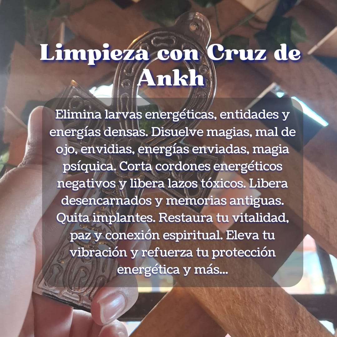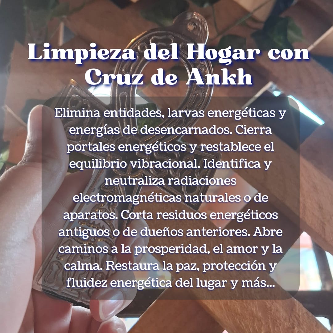 Los espacios también absorben y cargan con energías densas. De no ser tratadas, podrían llegar a ser espacios/casas enfermas. Con la Cruz de Ankh canalizo energía de luz para limpiar y sellar todo el entorno, las contaminaciones que pueda tener tu hogar, restaurando su armonía natural.